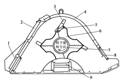 圖9-5 穩(wěn)定土拌和機(jī)轉(zhuǎn)子及罩殼結(jié)構(gòu)示意圖