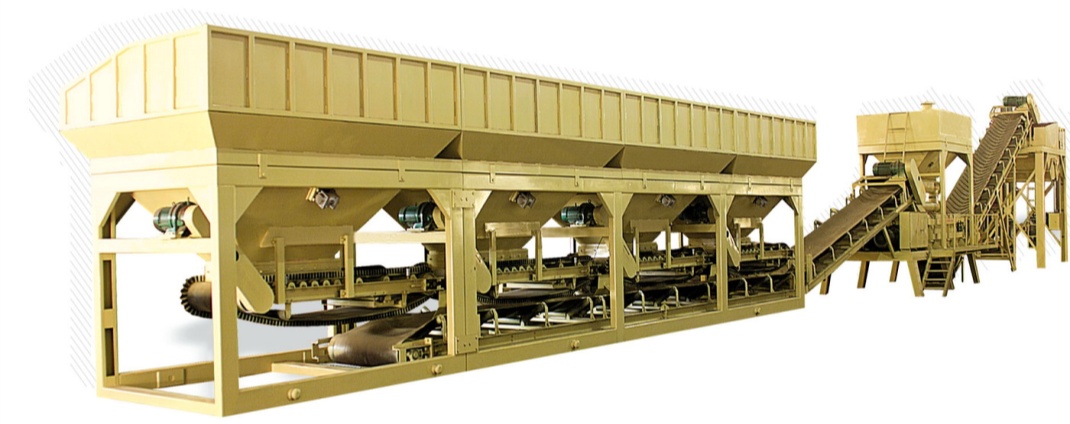 穩(wěn)定土廠拌設(shè)備主要由礦料 (土、碎石、砂礫、粉煤灰等 )配料機(jī)組、集料皮帶輸送機(jī)、粉料配料機(jī)、攪拌機(jī)、供水系統(tǒng)、電氣控制柜、上料皮帶輸送機(jī)、混合料儲倉等部件組成。由于廠拌設(shè)備規(guī)格型號較多,結(jié)構(gòu)布局多樣,因此,各種廠拌設(shè)備的組成會有所不同。