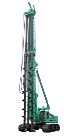 液壓抓斗成槽機由履帶式(或履帶起重機)樁架和抓斗組成。連續墻抓斗與一般挖掘機抓斗不同,它帶有導向裝置,可防止抓斗任意偏轉。目前常用的有導桿式液壓抓斗和懸掛式液壓抓斗,如圖所示。其中最先進的是懸掛式液壓抓斗。它刀口閉合力大,成槽深度大,同時配有自動糾偏裝置可保證抓斗的工作精度在1/1000左右,是大中型地下連續墻施工的主要機械。導桿式液壓抓斗是在履帶主機上掛有一個可伸縮的導桿作導向,可以保證槽的垂直度。但由于導桿的長度有限,成槽深度一般不超過40m,應用并不普及。